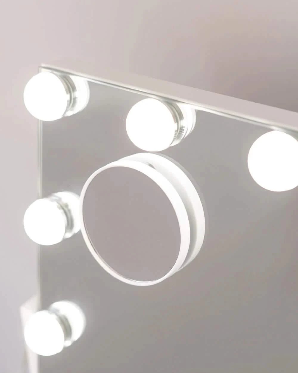 Ajusta el color y la intensidad de la luz fácilmente con sus botones táctiles. Además, incluye un espejo de aumento x5 para no perderte ningún detalle.