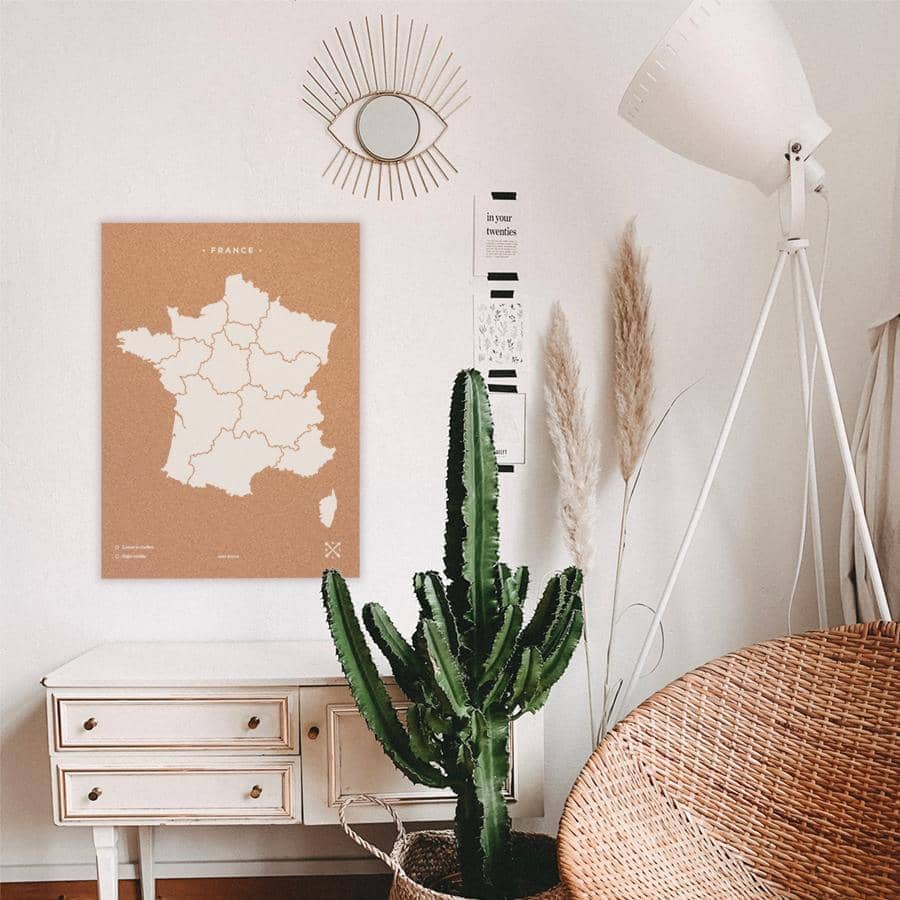 Decorate the walls of your home with a cork map of France. Choose between black or white for the frame and design, and think in which room you'd like to hang it. You know it already? Perfect! Now, all you have to do is place the pins included and add your most beautiful vintage-style shots.